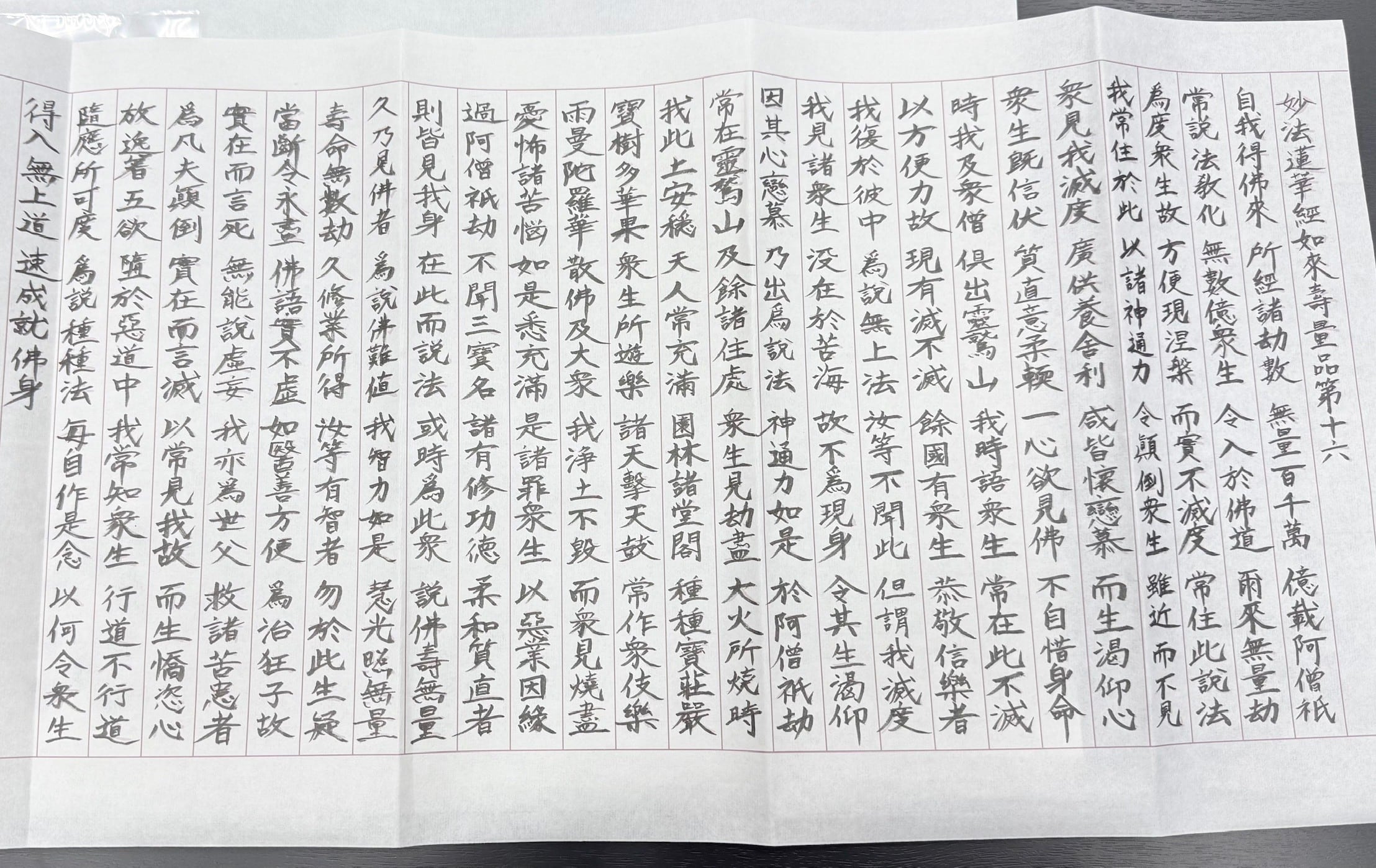 ●写経用紙 妙法蓮華経如来寿量品第十六 <自我偈>なぞり5枚入り